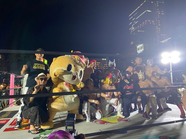 上記写真は大阪城公園で大阪プロレスのリングでカレフェスLIVE